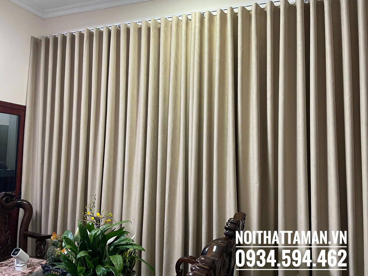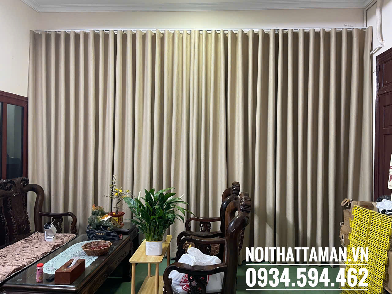 Rèm vải thô màu vàng be may định hình