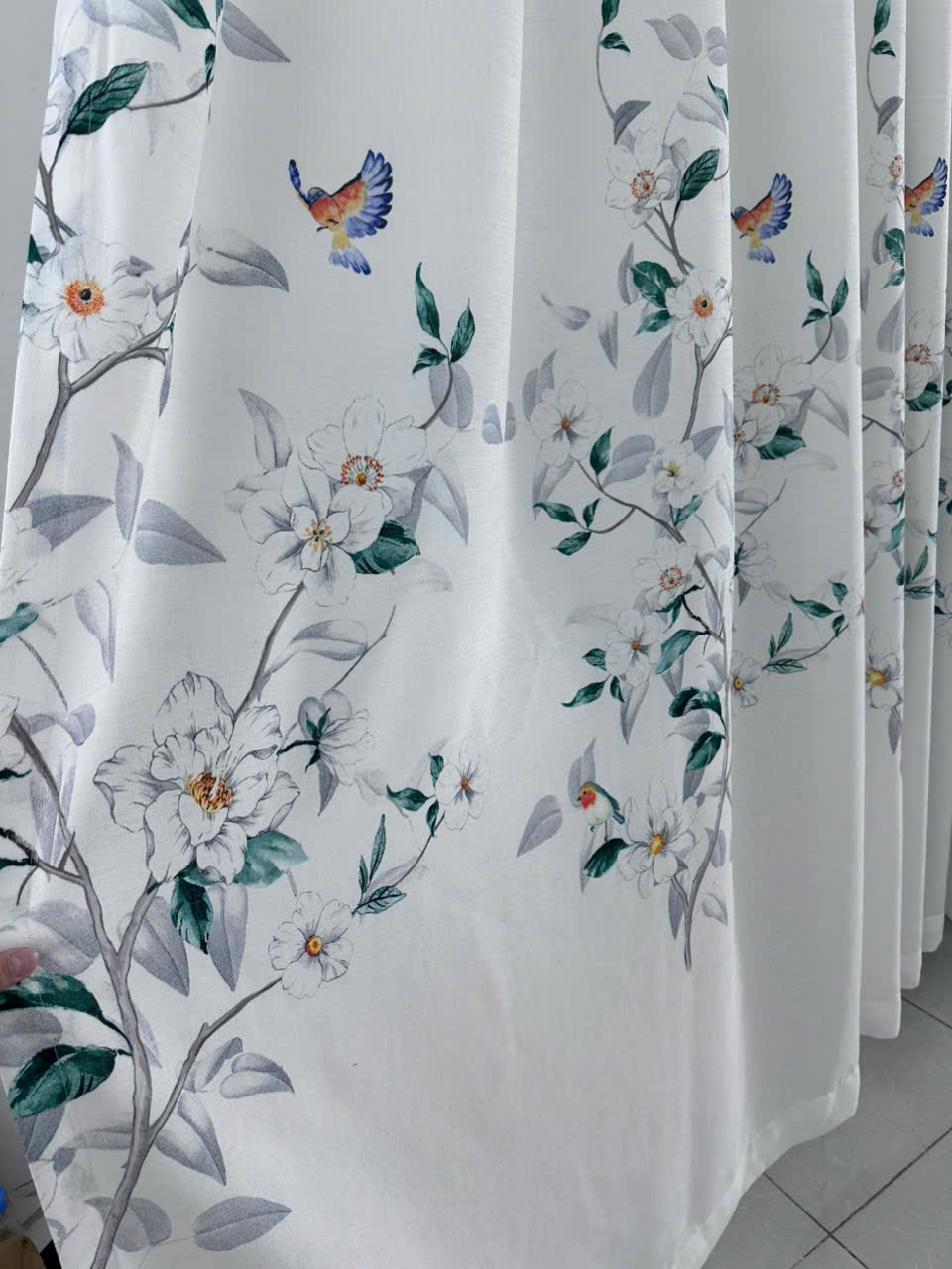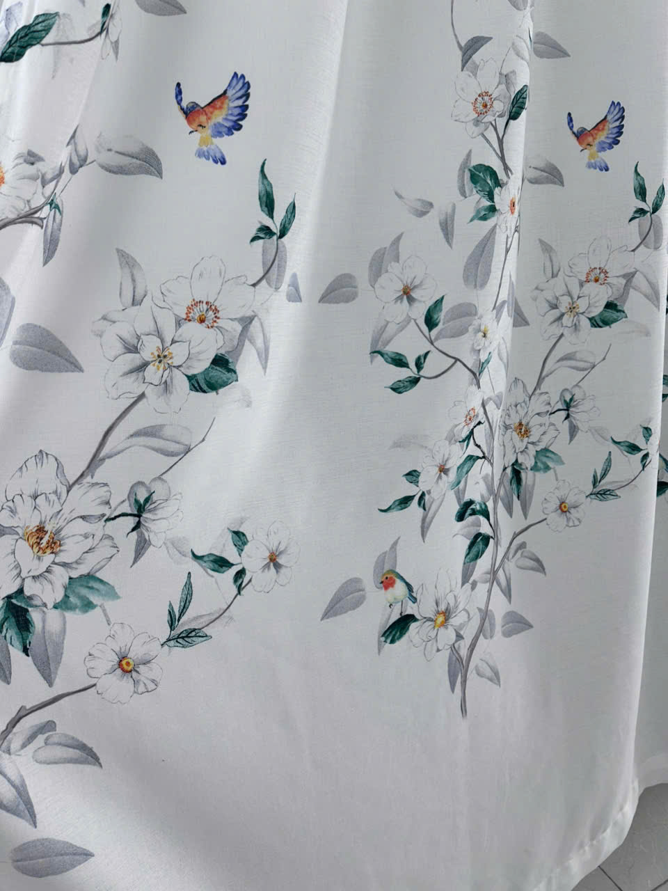 Rèm Voan Lụa In Họa Tiết Chim và Hoa – Vẻ Đẹp Tinh Tế Cho Không Gian Sống