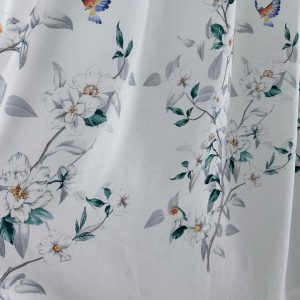 Rèm voan lụa in họa tiết chim và bông hoa là lựa chọn hoàn hảo cho những ai yêu thích sự tinh tế và lãng mạn. Chất liệu lụa voan mềm mịn, nhẹ nhàng kết hợp với hoa văn chim – hoa in sắc nét mang lại cảm giác gần gũi với thiên nhiên, đồng thời tạo sự thông thoáng và bay bổng cho không gian.